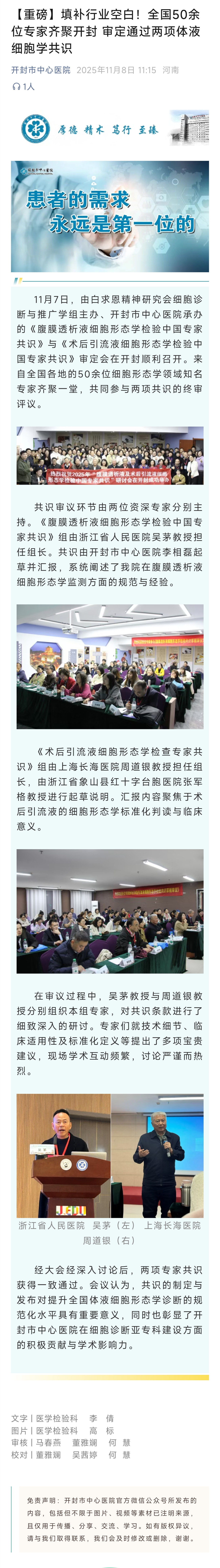 【重磅】填补行业空白!全国50余位专家齐聚开封 审定通过两项体液细胞学共识