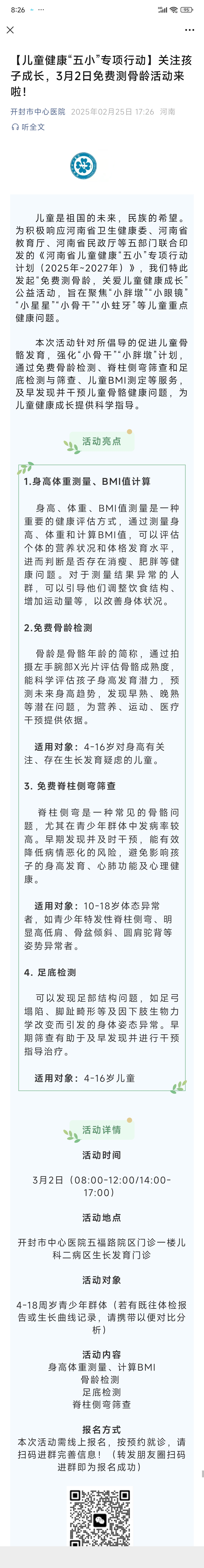 【儿童健康“五小”专项行动】关注孩子成长,3月2日免费测骨龄活动来 啦!